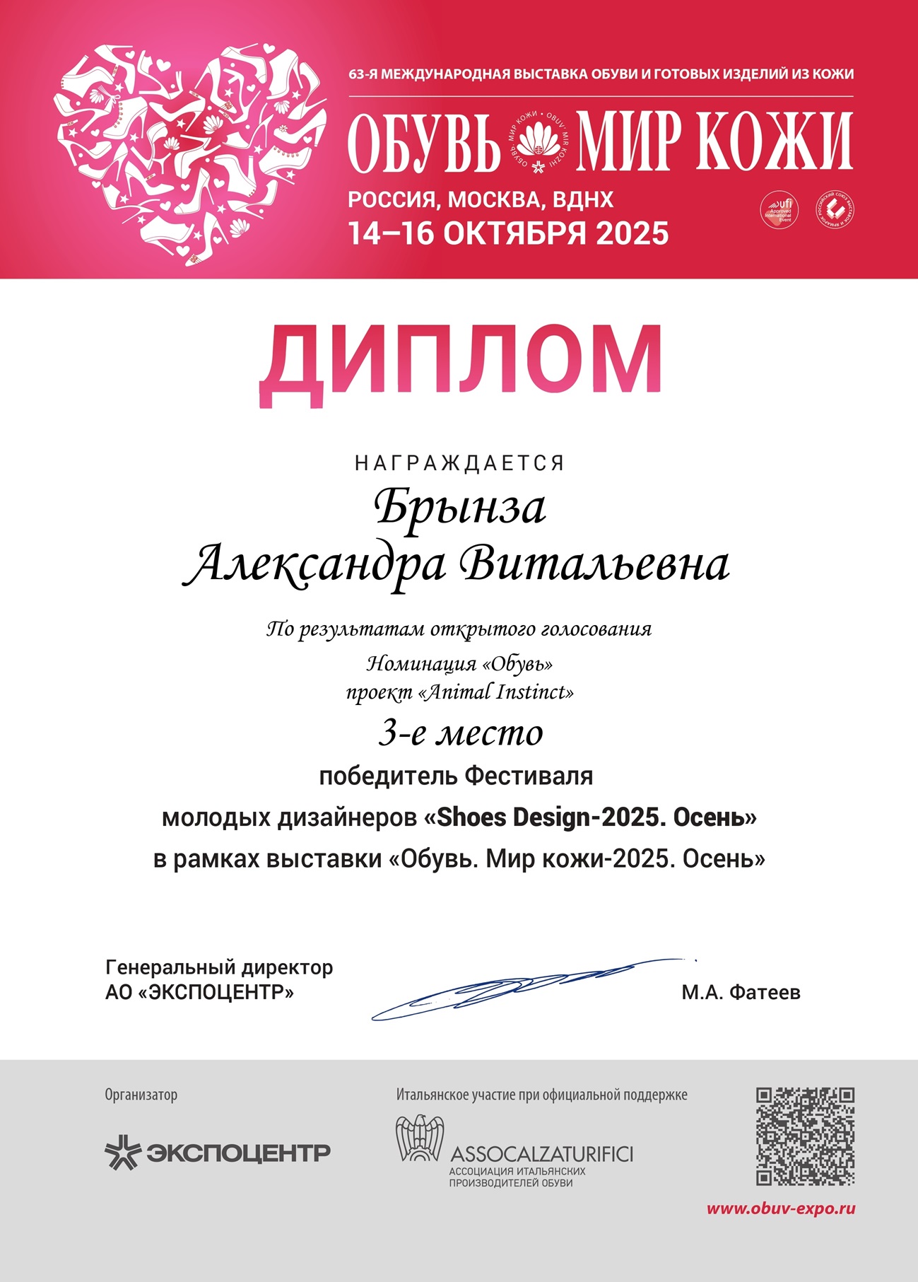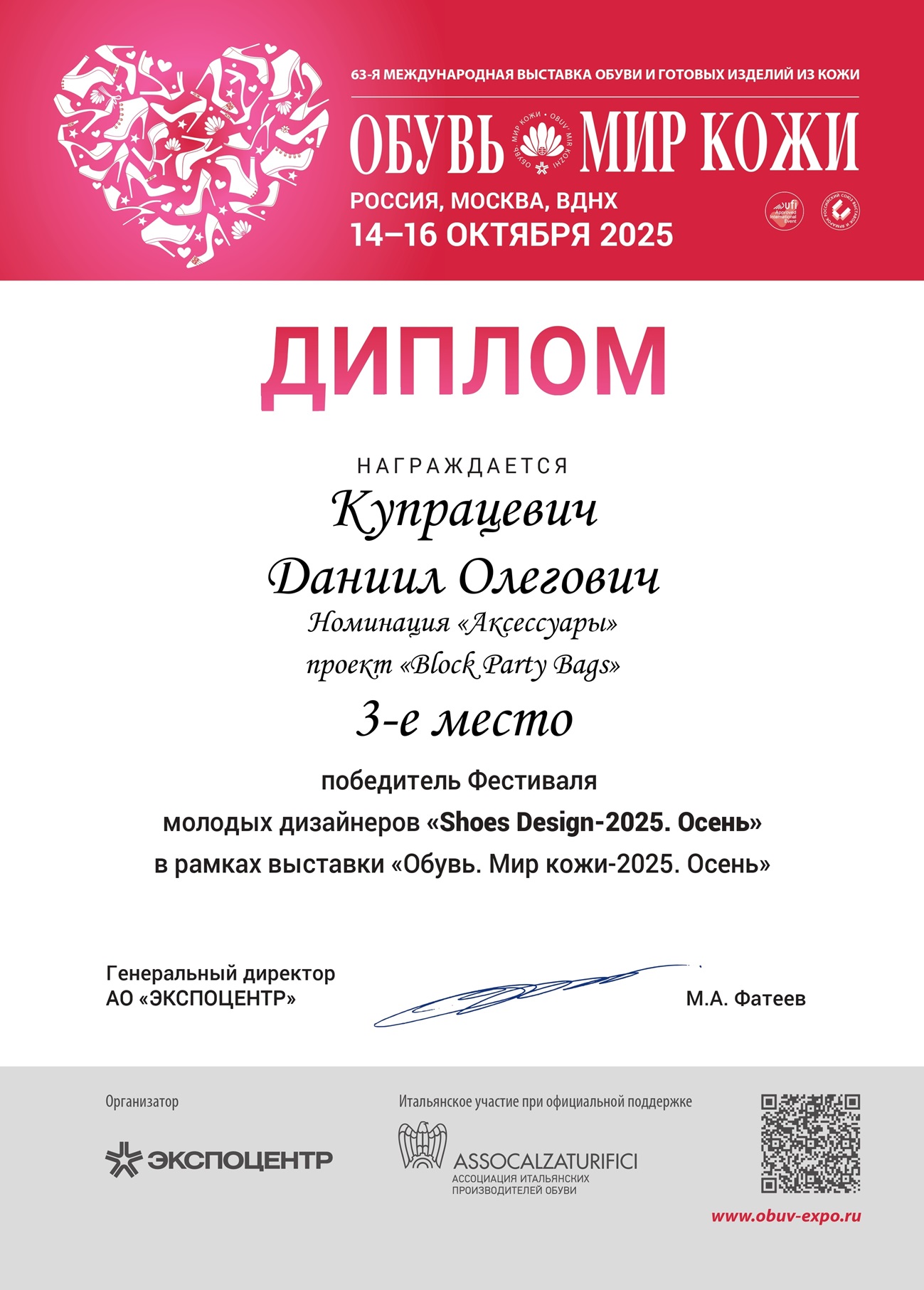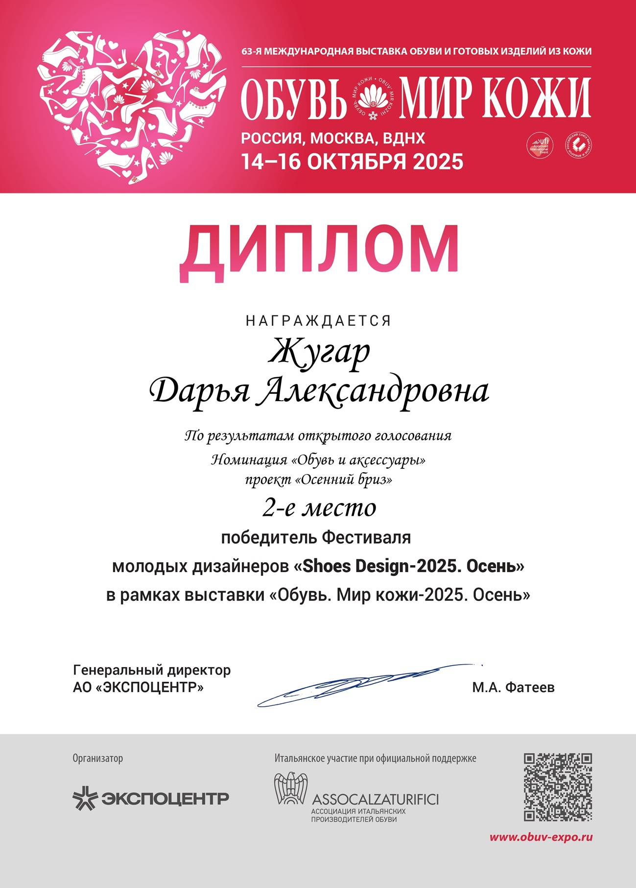 В октябре 2025 года в рамках 63-й международной выставки обуви и готовых изделий из кожи «Обувь. Мир кожи-2025. Осень» прошел Фестиваль молодых дизайнеров «Shoes Design 2025. Осень». В этом сезоне в фестивале приняло участие более 130 проектов! Победители фестиваля определялись по результатам оценки профессионального жюри и онлайн-голосования по трем номинациям «Обувь», «Аксессуары» и «Обувь и аксессуары». Студенты факультета производственных технологий приняли активное участие и стали призерами конкурса.